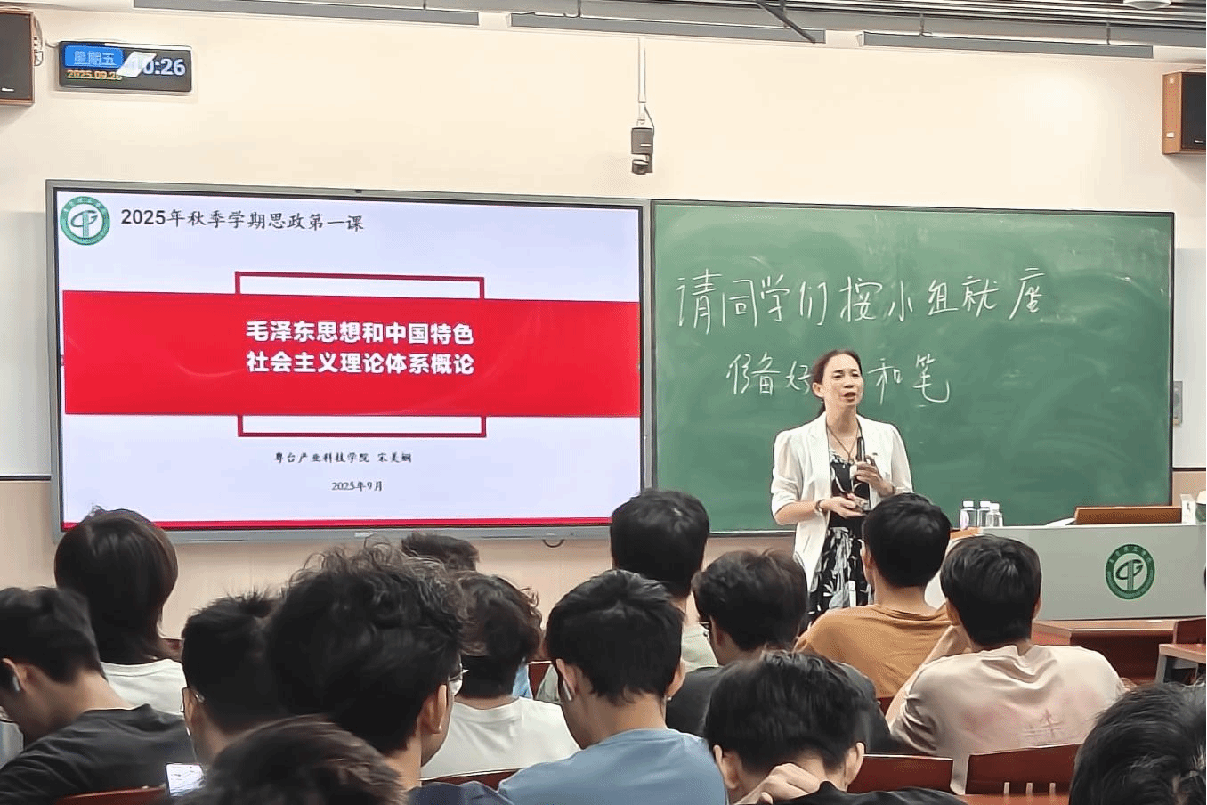 为引导学生加深对毛泽东思想和中国特色社会主义理论的认知,筑牢思想根基。9月26日,粤台51吃瓜 党委书记宋美娴在莞城校区1号楼301教室为2024级(粤台)工业设计1班、电商1-2班和计技1班共130名学生上“思政第一课”。